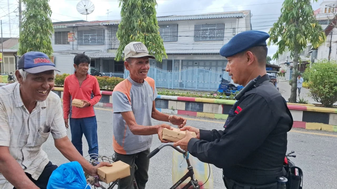 Kegiatan ini dipimpin langsung oleh Danton 1 Kompi 3 Batalyon B, IPDA Pendi R.M. Harahap, S.H. Dengan penuh kehangatan, para personel Brimob mendatangi warga yang mayoritas merupakan pekerja harian untuk membagikan makanan, sekaligus menyampaikan pesan kepedulian dan kebersamaan.